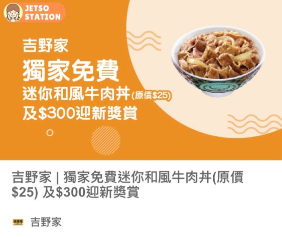 資料及圖片來源: 吉野家 / 編輯: Jetso Station 免費試用情報站