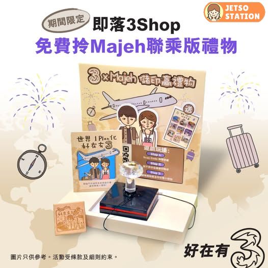 聯乘本地插畫家Majeh 爲大家帶嚟一套9款以「想飛就飛」 為主題嘅靚靚印仔!而家去3Shop儲印,即可換取限量版聯乘貼紙、印仔同其他精美小禮物!