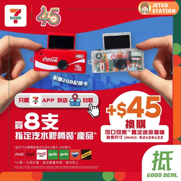 #7ElevenHK #7Eleven便利店 #快啲嚟7仔啦 #CocaColaHK #可口可樂 #7Eleven45th #隨時飲樂捕捉快樂 #迷你相機 #數碼相機 #限時換購 #香港限定