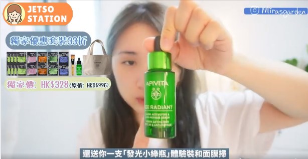 【 Mira 미라 咪拉 公開私藏補水秘技│必搶33折套裝】完全融入韓國生活嘅Mira,首次公開佢嘅私藏補水急救神器 !將 APIVITA發光小綠瓶 ─ 亮肌嫩膚激活精華滴入人氣No.1 仙人掌面膜 一齊敷,10分鐘後~~~嘩!!! 肌膚水潤彈滑,唔駛加filter都光澤感十足! 就算韓國咁乾,都保持到剔透亮澤嘅水潤肌啦!