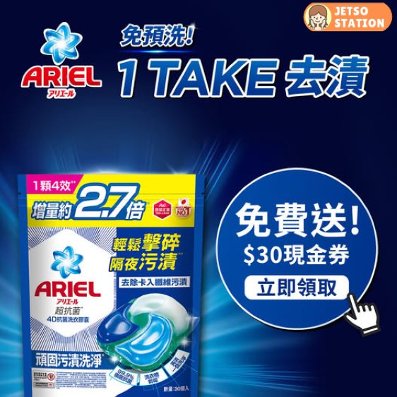 #日本銷量No1 #ARIEL抗菌抗臭洗衣膠囊 #超強極淨 #一Take去漬 #ArielHK