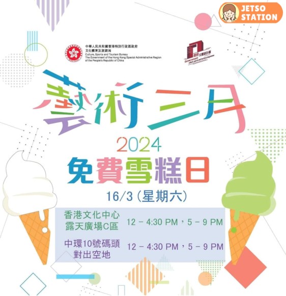 #免費雪糕日 #藝術三月 #ARTMARCH2024 #香港文化中心 #金紫荊廣場 #中環碼頭 #周末好去處 #文化體育旅遊走入生活 #政府文體旅計劃 #文化體育及旅遊局 #CSTB
