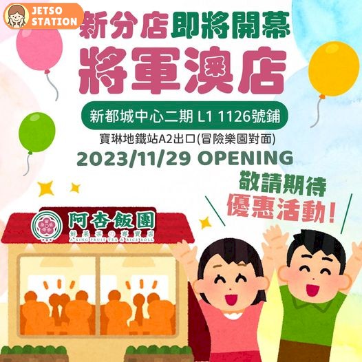【阿杏飯團】香港第五分店隆重開幕啦!阿杏飯團的第五家分店將於11月29日正式開業!阿杏飯團為咗感謝大家一直以來支持,我們準備了一系列精彩的開業活動,讓您在這個特別的日子感受到滿滿的福利和驚喜!