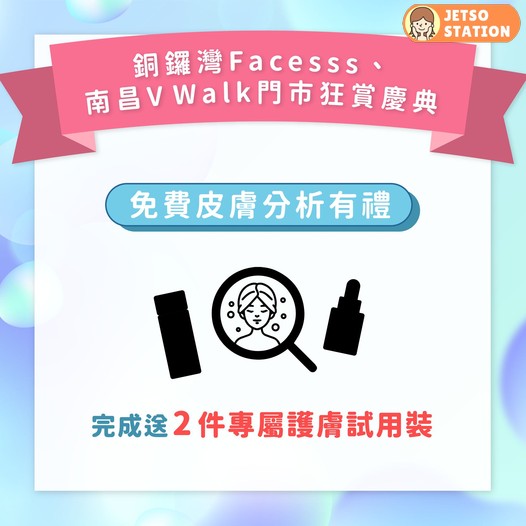 好耐冇update過用緊嘅護膚品🥲?天氣唔同咗,皮膚嘅需求都可以差好遠! 5月5日起至5月9日,銅鑼灣Facesss專櫃、南昌V Walk專門店舉行限時狂賞慶典,為你貼心送上 #免費皮膚分析服務 ,除咗度身訂造春夏護膚步驟,完成後仲即送專屬體驗套裝~同步推出多款低至55折慶典獨家套裝,多買多賞!