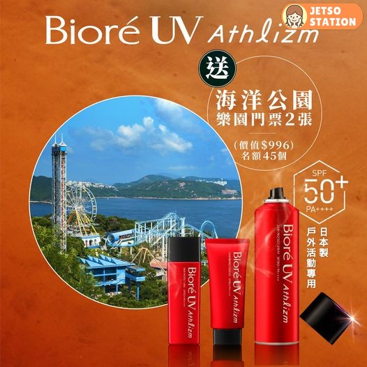 【Bioré Athlizm盛夏狂賞曲第二浪:送海洋公園樂園門票!】Athlizm今個夏日陪你盡情玩盡情曬~特別驚喜加推第二輪有獎遊戲!依家只要同我哋分享一張 Athlizm極防水防曬系列陪你玩嘅相,再完成以下步驟,就有機會贏取海洋公園樂園門票兩張(名額:45個),立即把握機會參加遊戲,同 friends一齊享受難忘嘅一日啦!