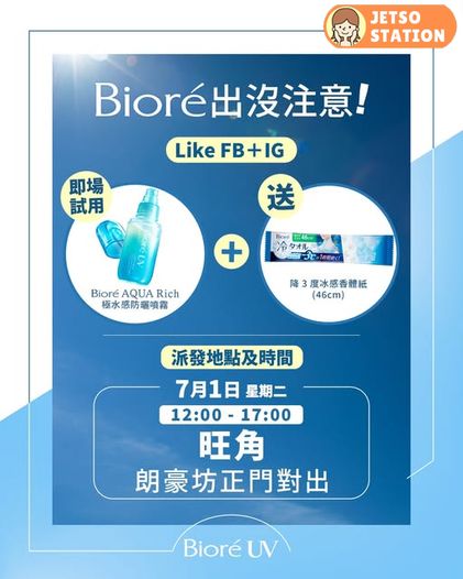旺角限時免費派發!Bioré 陪你防曬降溫Keep住清爽!