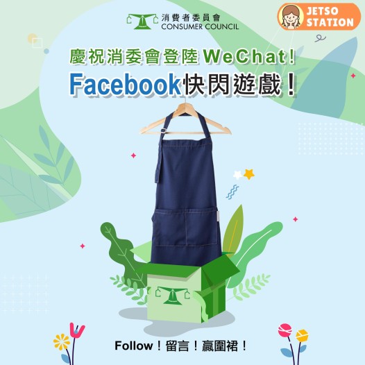 【快閃遊戲!贏取日系圍裙!為慶祝消委會登陸WeChat,正式推出官方微信公眾號。Facebook 與WeChat同步與你大玩快閃遊戲,等你贏取睇得又用得嘅圍裙乙條。Keep 住日日都有健康好「煮」意!玩遊戲之餘,記得關注埋「香港消費者委員會」WeChat 呀~