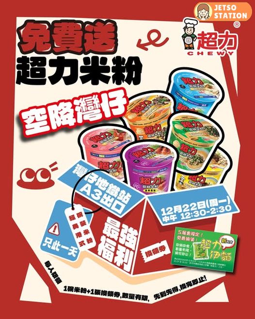 工展會福利又嚟啦~超力於 12月22日(星期一)中午12:30-14:30空降灣仔地鐵站A3出口。
