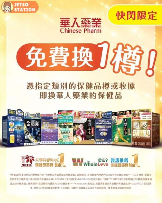 資料及圖片來源: 華人藥業 / 編輯: Jetso Station 免費試用情報站