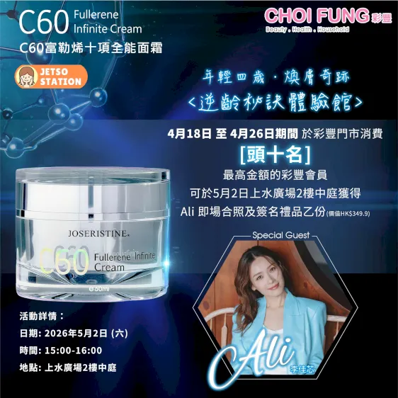 #彩豐 #香港品牌 #香港製造 #C60 #逆齡 #C60富勒烯十項全能面霜 #李佳芯 #AliLee #上水廣場 #限時體驗館