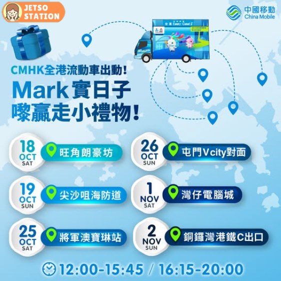 #全運會 有CMHK #全港流動車 率先預熱!中國移動作為第十五屆全國運動會官方合作夥伴,當然要與全港市民共慶全運喇﹗由10月15日至11月6日連續3個禮拜,CMHK會派出全港流動車,開到去全港各區,與您共慶全運及為出戰港隊打氣,到時流動車仲會帶來CMHK網絡、服務的展示區,等您了解下CMHK於全運會的支援,逢星期六、日,仲會有推廣員同大家於車上大玩擊劍同籃球激戰等小遊戲,俾大家化身運動員做運動,仲有機會拎走精美小禮物!我哋嘅全港流動車一個禮拜7日,日日出動,大家行過路過唔好錯過!記得緊貼住我地,隨時Mark低日子、地點,過嚟搵我哋玩!有咩疑問,歡迎致電全運會專線2945 8883查詢!