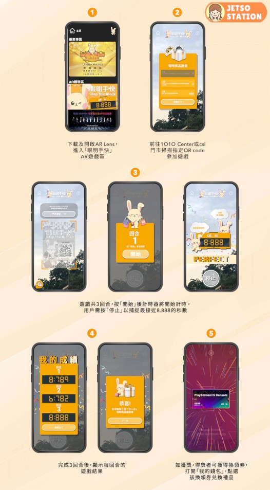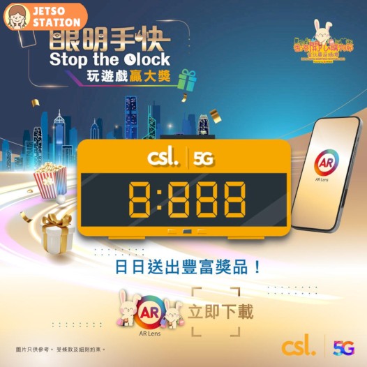 【開心購物節:即玩AR Lens「眼明手快」遊戲日日贏走PlayStation®5及其他豐富禮品!】 玩遊戲贏大獎!由即日起至8月10日,前往 csl 門市,打開AR Lens進入「眼明手快」AR遊戲區,掃描店內指定QR code即可參加遊戲,成功捕捉8.888秒或最接近嘅秒數即有機會贏得豐富獎品,包括: 大獎:撳中8.888秒,可獲PlayStation®5主機連God of War™ Ragnarök 遊戲套裝(每日1名) 二獎:撳中8.88秒,可獲csl 5G 24個月服務計劃(每日3名) 三獎:撳中8.8秒,可獲5G亞太區漫遊通行證/ Now E HK$38電影租看券/ Now E HBO GO一個月通行證/ MOOV 24 bit 音樂服務一個月通行證(每日400名) 你可於每間 csl 門市挑戰1次,去得愈多門市挑戰,中獎機會愈大!立即下載 AR Lens:https://bit.ly/3DRqWeV #csl #ARLens #舉機拎精彩獎賞