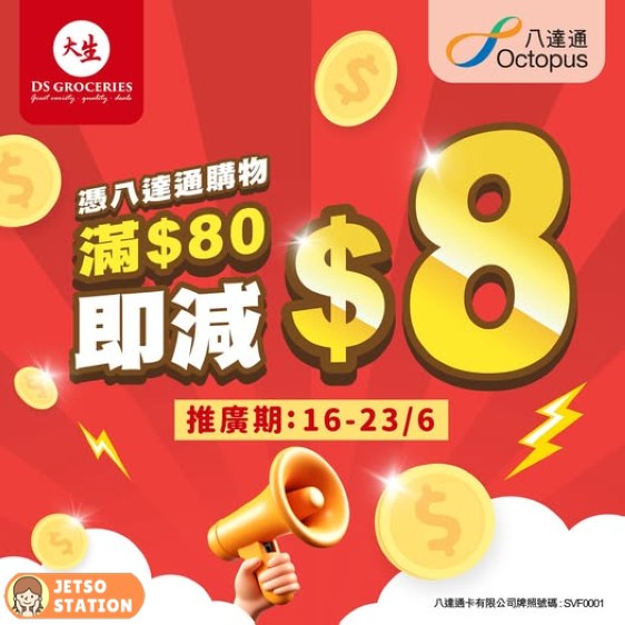 11周年限定優惠!新一輪優惠等你嚟拎!由即日起至6月23日,購物滿$80,用八達通支付,即減$8,記得唔好錯過!
