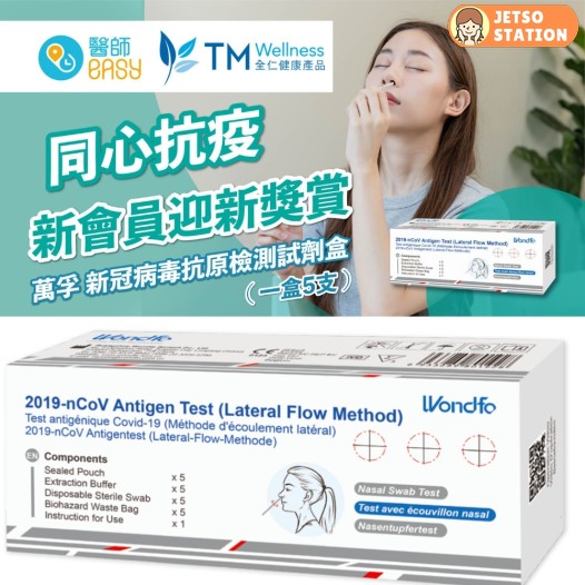 是次活動由 TM Wellness 全仁健康產品贊助,成功登記的醫師Easy新會員可獲得一盒5支「萬孚 新冠病毒抗原檢測試劑盒」(價值 $198),名額共500個;相關運費採取順豐到付形式,須由用戶承擔,數量有限,送完即止。