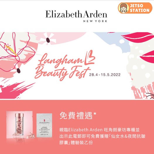 #ElizabethArdenHK #langhamplace #LanghamBeautyFest # #免費 #著數 #試用裝 #體驗裝 #旅行裝 #優惠 #jetsostation #免費試用 #jetso #免費換領 #香港著數