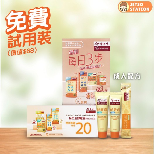 由即日起至2022年3月20日期間,登記成為余仁生會員即可獲贈舒敏膚系列(成人配方或兒童配方)試用裝1份 及 1,000 會員獎賞積分 。