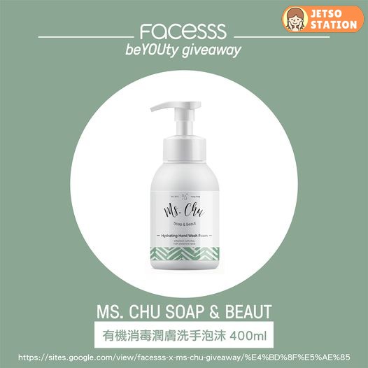 【Facesss X MS. CHU SOAP & BEAUT Giveaway】疫情下經常要洗手,但出面餐廳、商場提供嘅洗手液都未必適合自己使用。今次推出嘅洗手泡沫適合濕疹、敏感皮膚使用!佢有效殺死99.9% 細菌、病毒,清潔同時滋潤雙手,即使洗完手都唔會覺得乾!洗手泡沫含天然鼠尾草、柑橘果香,可以舒緩心情同情緒壓力~今次仲特別推出30ml,150ml同400ml唔同容量選擇,適合一家人屋企使用或便攜外帶。
