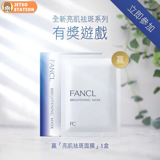 把握機會,參加FANCL「全新亮肌祛斑系列」有獎遊戲 贏「亮肌祛斑面膜 」1盒。今個夏天,為你創造亮白新高度,隨時白滑肌示人!FANCL全新「亮肌祛斑系列」裡面含有全新配方令肌膚散發透亮光釆,由根源改善色素問題,同黑色素講byebye!同時配合呵護肌膚嘅無添加配方,達至速效亮白同時安全可靠嘅多重效能。