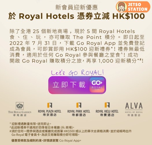 資料及圖片來源: Go Royal by SHKP / 編輯: Jetso Station 免費試用情報站