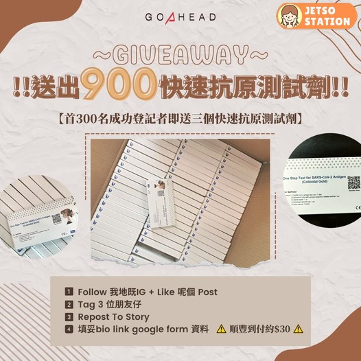 大家都知近日疫情嚴重左好多,面對每日破三萬確診人數,真係搞到人心惶惶,而GoAhead Group都不吝嗇地大放福利,送出9️⃣0️⃣0️⃣個快速抗原測試劑。首300名成功登記者,每人即可獲得快速抗原測試劑3️⃣盒‼️
