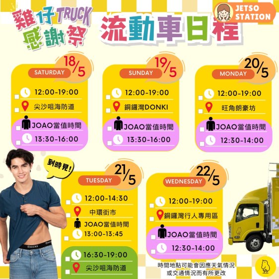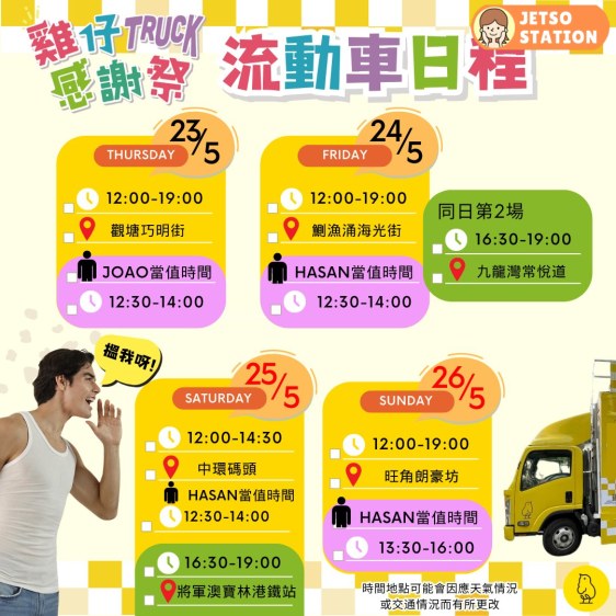 雞仔嘜送感謝Truck日程: