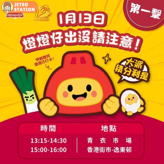 各位青衣、逸東街坊,1月13日可愛嘅燈燈仔出動探大家~佢會大派香港街市會員積分!仲會同各位街坊瘋狂打卡影靚相,你地準備好未?mark低時間,唔好走寶啦~