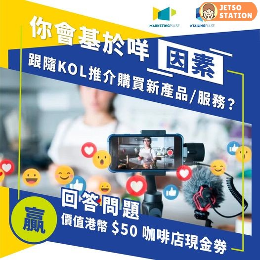 依家各大社交平台都有唔少KOL介紹唔同產品、服務,而且親身講述試用感受。有啲KOL更加會開live直播開箱同試用產品,即時親自回應觀眾嘅疑問。唔知大家有冇曾經參考過KOL嘅介紹去購買新產品,或者體驗新服務呢?原因又係咩呢?快啲留言同我哋分享你嘅消費考慮因素,同時完成簡單步驟,就有機會贏取價值港幣$50嘅咖啡店現金券(名額:100個),為你日常生活叉叉電!