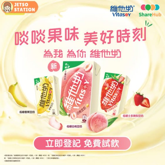 ShareHub邀請你試飲維他奶低糖豆奶,經典豆奶嘅濃郁口感同果味嘅香甜完美結合,絕對係你嘅至fresh 之選!