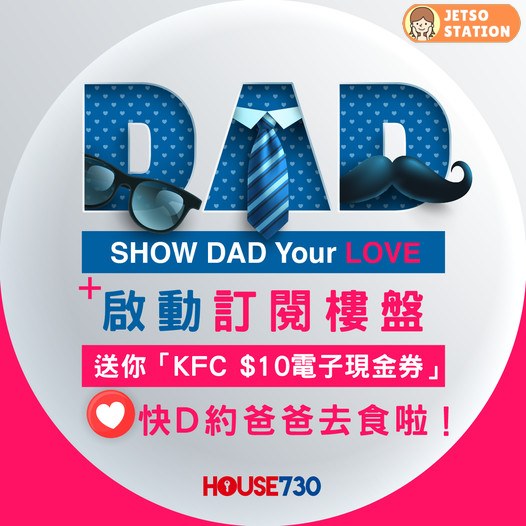 啟動「訂閱樓盤」送你「KFC $10電子現金券」,把握機會,約爸爸食飯。最好的禮物,不在於貴而在用心。