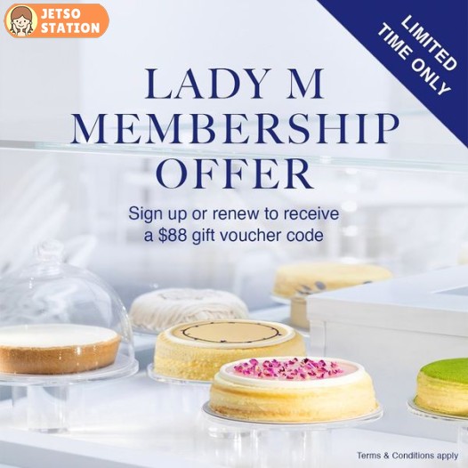 限時Lady M會員尊享優惠!立即到網站登記成為會員或更新現有會藉,並透過WhatsApp預訂指定Lady M 原個蛋糕,即獲禮劵優惠碼(價值$88)!*