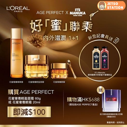 大家都知 L’OREAL PARiS AGE PERFECT金致臻顏花蜜奢養系列,注入珍貴麥盧卡花蜜,高效滋潤肌膚。 今個周末仲聯乘 IT’S MANUKA 送出天然麥盧卡蜜糖健康飲品,帶畀你1+1內外滋潤唔想錯過即睇。詳情: