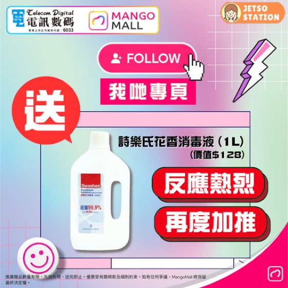 2. 參加者須於追蹤(Follow) 及於貼文下留言(Comment),並將追蹤截圖畫面發送指定訊息(Instagram DM) 至[email protected] Instagram 帳號,方可獲贈免費詩樂氏花香消毒液 (1L)(價值$128) 1支。每人不論帳號,只可領取贈品1次。