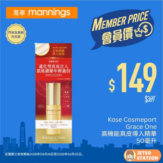 – Kose Cosmeport Grace One高機能真皮導入精華 50毫升 → 會員價$149^