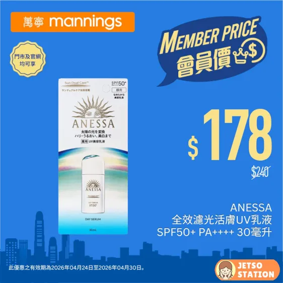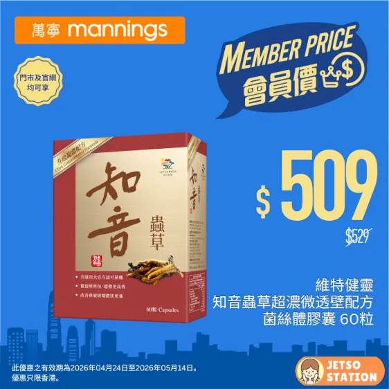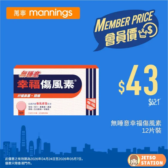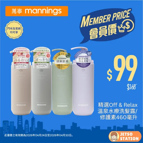 資料及圖片來源:萬寧 Mannings / 編輯:Jetso Station 免費試用情報站