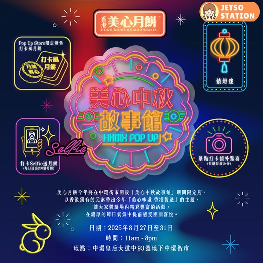 大家可以喺27/8至31/8呢段時間親臨中環街市,提前體驗中秋嘅熱鬧氣氛,一齊涉獵多個香港懷舊特色打卡位,一齊參與場內唔同活動贏取限定禮品!究竟限定店有乜嘢活動優惠值得留意同Bookmark?即刻偷偷地話您知:
