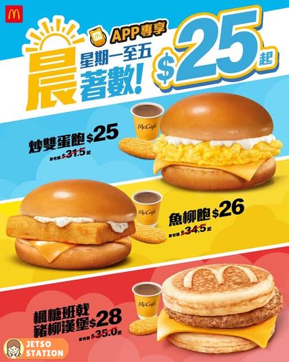 而家入麥當勞App$25起就歎到!跟餐仲有脆薯餅同香濃McCafé咖啡添~快啲開App落單,歎個美味Goooood Morning啦~