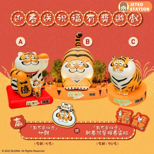 「我不是胖虎」第一次嚟到MCP CENTRAL & MCP DISCOVERY 同大家拜年,點可以無禮物呢?即刻變身「送禮虎」送禮物畀大家!只要為「我不是胖虎」嘅搞笑可愛pose配上有趣嘅賀年祝賀語,最有創意嘅5位參加者就有機會贏到「我不是胖虎」地氈,而最搞笑嘅20位參加者就有機會贏到「我不是胖虎」新春限量揮春窗貼 乙對,今個新年笑聲不斷!今個新年笑聲不斷!