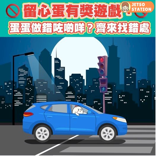 【留心蛋有獎遊戲:蛋蛋做錯咗啲咩?齊來找錯處】弊啦弊啦,今次蛋蛋闖禍啦!喺呢一張圖入面,蛋蛋做咗 5 件司機唔應該喺道路上做嘅事,你哋又搵唔搵到出嚟呢?