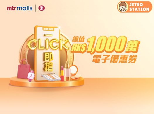 港鐵商場「一Click即搶」又登場啦!送出總值港幣1,000萬的電子優惠券!2024年6月28日中午12時起,記得登入MTR Mobile搶啊,先到先得,搶完即止!