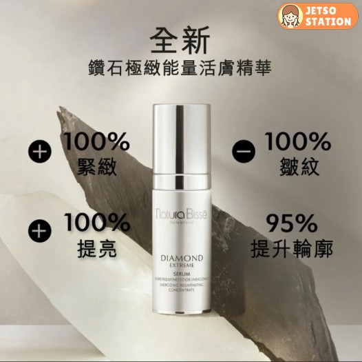 【全新鑽石極緻能量活膚精華│100%緊緻抗皺】為肌膚注入能量就是保持青春的秘密!備受荷里活紅星及星級化妝師熱捧的Natura Bisse 推出全新抗皺逆齡精華,以創新的賦活能量複合物,為肌膚真皮層提供能量,100%使用鑽石極緻能量活膚精華的人士表示,皮膚更緊緻明亮,並撫平皺紋和表情紋,重塑立體豐盈輪廓!