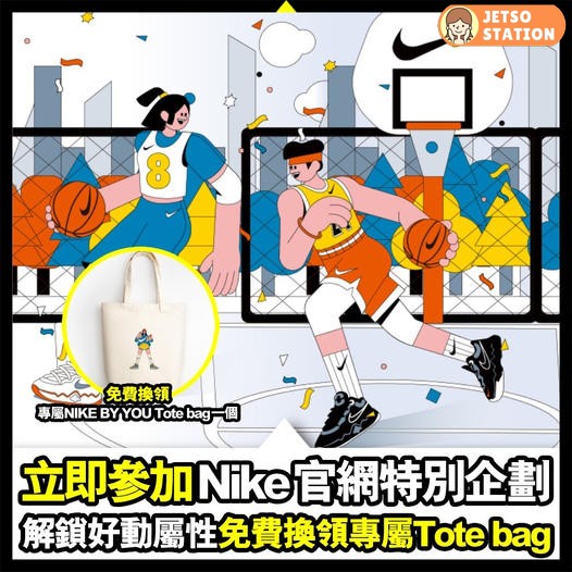 想知自己係咩好動屬性?快啲嚟完成 Nike官網8週年慶典特別企劃!只要用手機登入指定活動網站解鎖你嘅好動屬性,並於社交媒體分享你的專屬運動海報,就可以喺8月12日起收到活動獎勵卡後,再去海港城Nike Kicks Lounge免費換領你嘅專屬NIKE BY YOU Tote bag一個。記住數量有限,送完即止,立即行動!