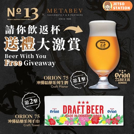 去睇波又點少得啤酒助慶?為咗隆重慶祝,No.13喺11月4日-11日決定免費請大家飲返杯 #ORION 75沖繩精釀系列生啤!更特設打卡活動,得獎者可獲限量 #ORION 75沖繩精釀系列紀念品!