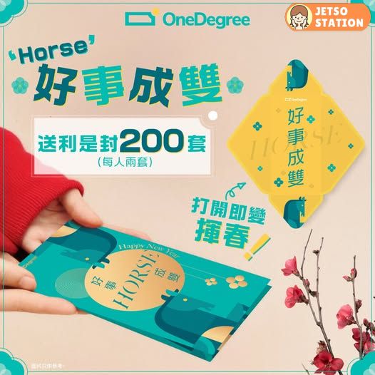 【馬年到! OneDegree送你「Horse」事成雙利是封】
