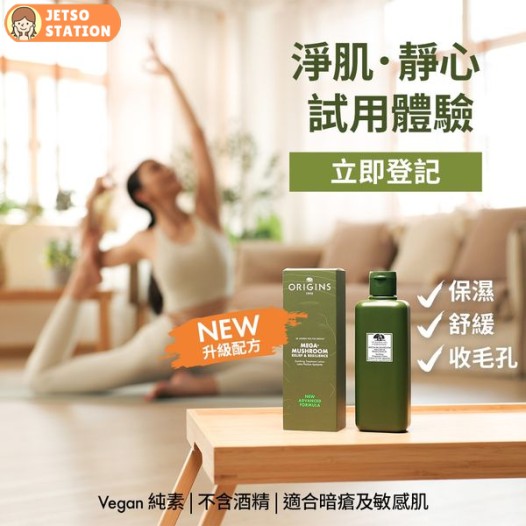 【登記免費體驗靈芝輕精華水修復力量】外來壓力使生活、身心靈欠缺平衡,引發不穩定肌膚 — 出現敏感泛紅、毛孔粗大、暗粒粉刺等問題?ORIGINS助你為肌膚及身心靈 修復.強化.重塑平衡!立即登記參與5分鐘「淨肌.靜心感官體驗」,完成體驗可獲皇牌靈芝修復2天體驗套裝*,包括升級配方靈芝輕精華水、靈芝精華及靈芝面膜!感受10倍濃度抗炎靈芝的天然高效修復力量,由內至外強化核心。