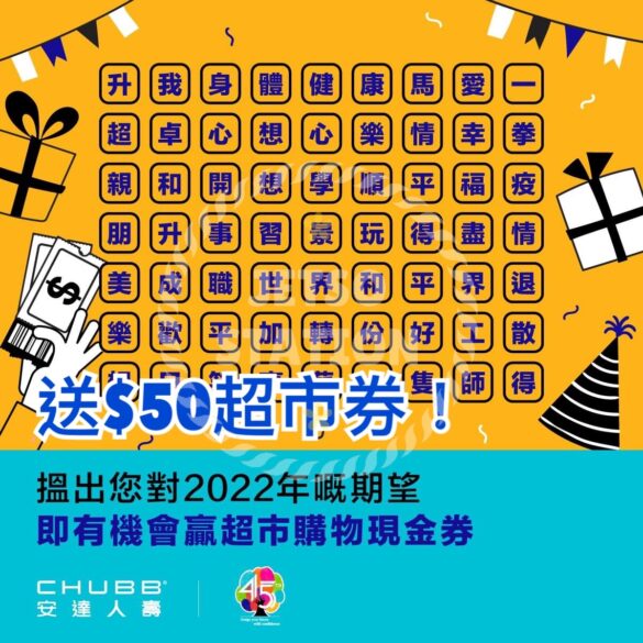 安達人壽 有獎遊戲 送超級市場 HK$50現金券 (100份)