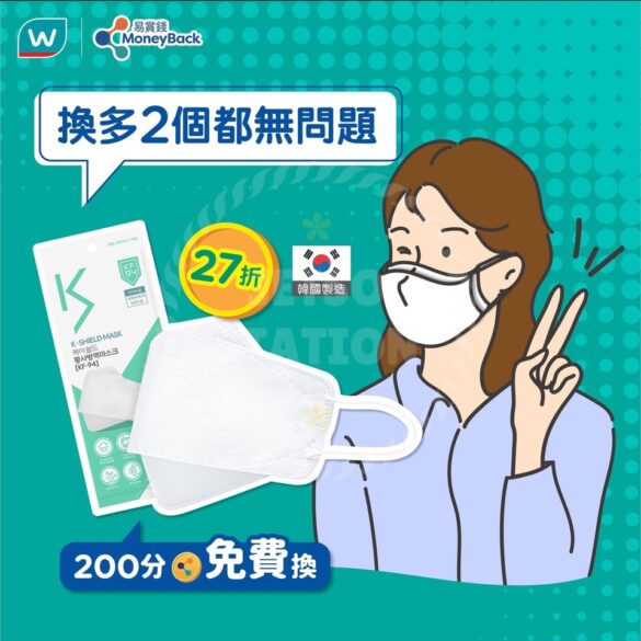 Watsons易賞錢APP會員200分 免費換KF94 高防護成人口罩一個