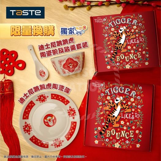 TASTE或FUSION 買滿$168 加$29.9獨家換購迪士尼跳跳虎新年餐具