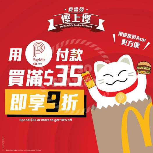Payme x 麥當勞 買滿$35即享9折