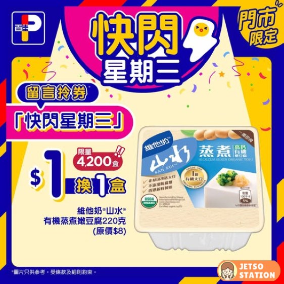 3. 憑優惠券買任何產品即可用$1換購維他奶®山水®有機蒸煮嫩豆腐220克 1盒