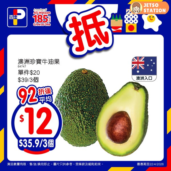 – 澳洲珍寶牛油果 – 92折後價: $35.9/3個